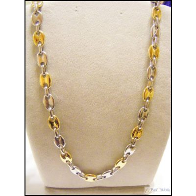 Olasz nemes acél férfi nyaklánc, arany bevonattal! Rendkívül mutatós, kiváló minőségű, 2 szín váltakozásával alkotja a nyaklánc különlegességét. Igazán szép, férfias darab, azonban erősebb testalkatú hölgyeknek is nyugodtan viselhető.