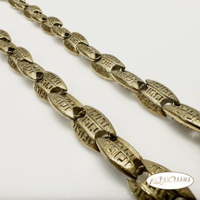 Nemesacél, 24K aranyozott férfi nyaklánc görög mintával.