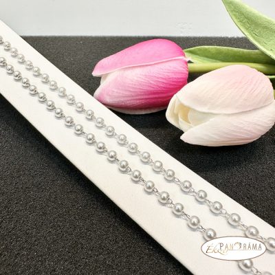 Nemesacél alapú gyöngyös nyaklánc. Acél szerelékekkel, szintetikus gyöngyökkel!