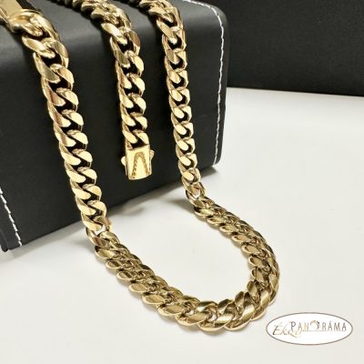 Aranyozott nemesacél nyaklánc és karkötő szettben, biztonsági kapcsolóval, magasfényű polírozással