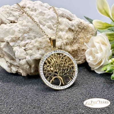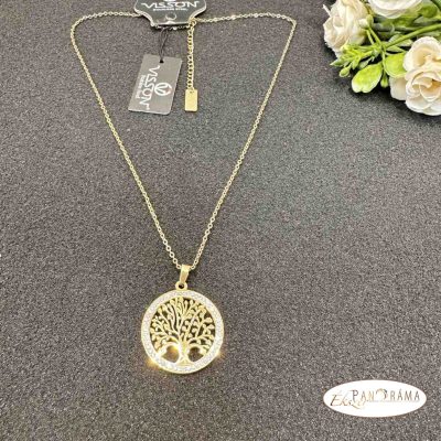 • Nemesacél aranyozott Nyaklánc kristályos életfa medállal- Visson