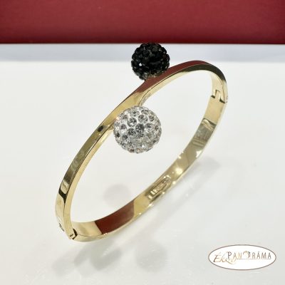 Aranyozott nemesacél karperec kristályokkal, nyitható kapoccsal záródik.