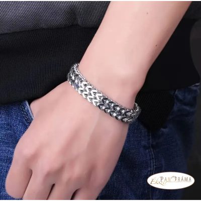 Ezüst színű rozsdamentes nemesacél dupla rétegű férfi karkötő. Elegánsan férfias viselet.