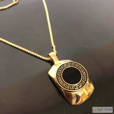 Nemesacél férfi nyaklánc görög mintás medállal.