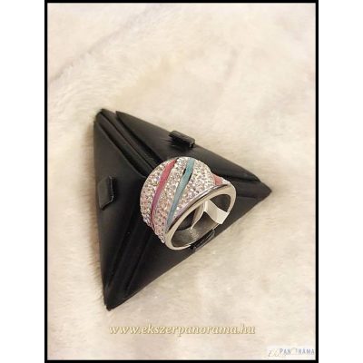Antiallergén nemesacél gyűrű gyönyörűen csillogó fehér kristályokkal és rózsaszín, világos kék betéttel! Divatos, szép kiegészítő kiváló minőségben!