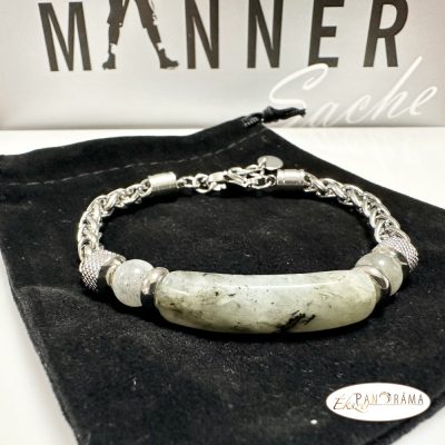 Nemesacél karkötő, Labradorit szürke ásványok, acél királylánc kombinációval