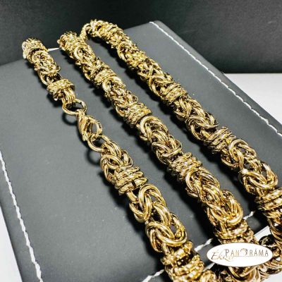 Nemesacél Kerek szemes, bizánci stílusú királylánc. Arany színű, magasfényű polírozással.