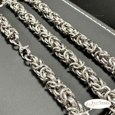 Nemesacél szett. Ezüst színű kerek szemes, bizánci stílusú királylánc karkötővel.