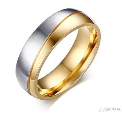 Nemes acél kő nélküli, két színű karika gyűrű .