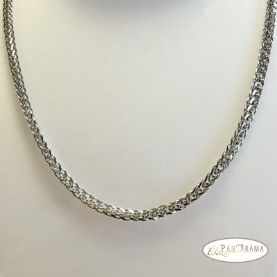 Könyített ezüst színű nemesacél nyaklánc, amely tökéletes kiegészítője lehet öltözetünknek.