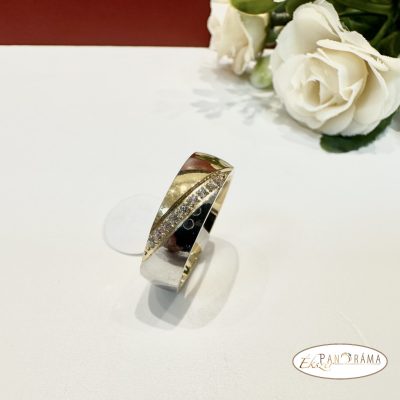 Nemesacél, női, kristályokkal díszített, két színű arany karikagyűrű