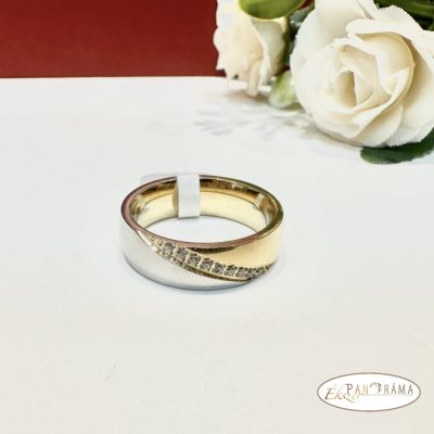 Nemesacél, női, kristályokkal díszített, két színű arany karikagyűrű