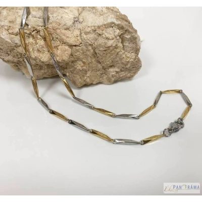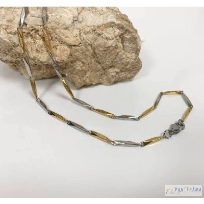 Nemesacél multicolor, arany és ezüst színű, görög mintás férfi nyaklánc.