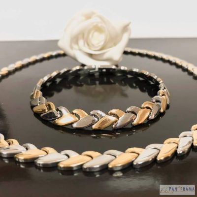 Mérete: Nyaklánc: hossza: 47 cm szélessége: 8 mm Karkötő: hossza: 20,5 cm szélessége 8 mm