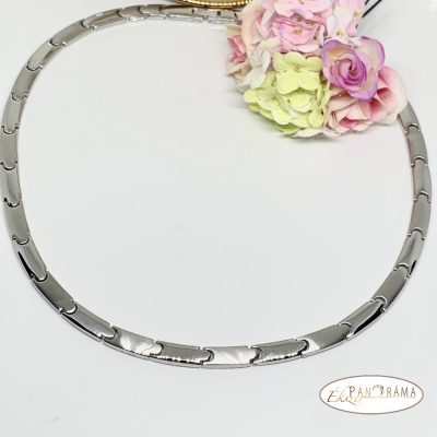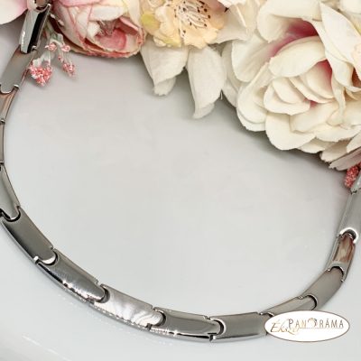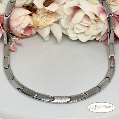 Egyszerű kidolgozású ezüst színű nemesacél nyaklánc, amely tökéletes kiegészítője lehet öltözetünknek.