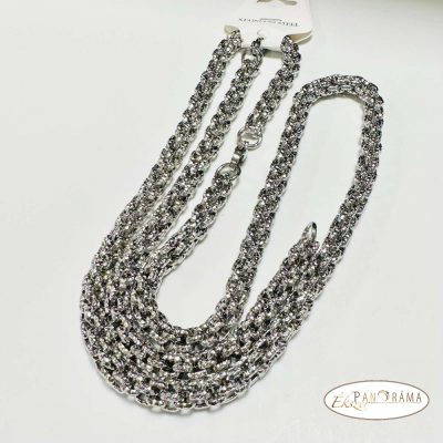 Ezüst színű nemesacél nyaklánc és karkötő szett.
