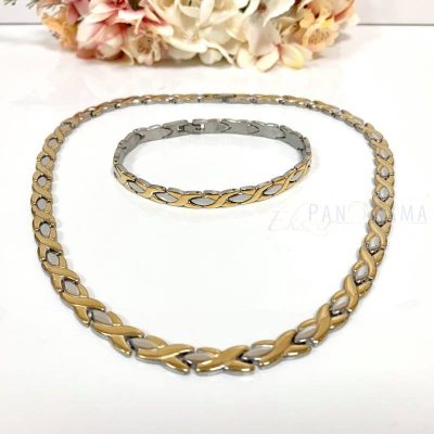 Mérete: a nyaklánc 47 cm hosszú és 8mm széles, a karkötő 20,5cm hosszú és 8 mm széles.