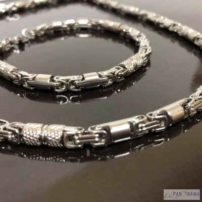 Ezüstözött nemesacél nyaklánc és karkötő szett.