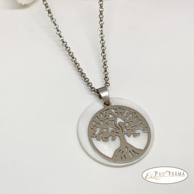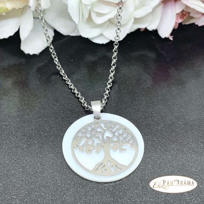 Nemesacél nyaklánc kagyló érmén életfa medállal