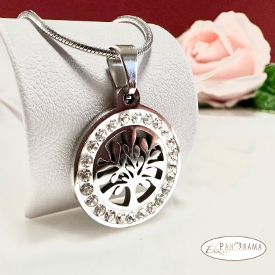 • Nemesacél nyaklánc medállal - Kristályos életfa