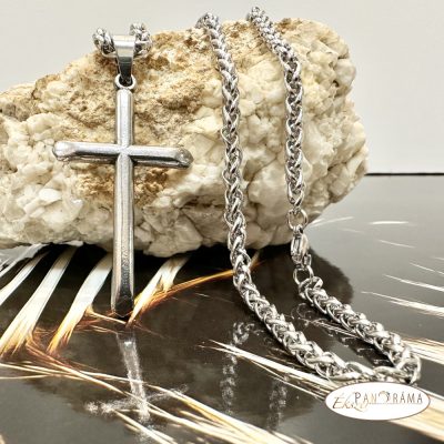 Ezüst színű nemesacél nyaklánc kereszt medállal
