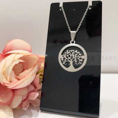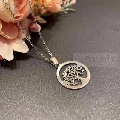 Különleges és finom kidolgozású ezüst színű nemesacél nyaklánc, amely tökéletes kiegészítője lehet öltözetünknek.