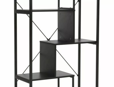 A Net B polcos állvány egy elegáns és praktikus bútordarab, amely tökéletesen ötvözi a modern dizájnt a funkcionalitással. A fekete laminált polclapok és a matt fekete fémváz harmonikus összhangot alkotnak. Az állvány 132 cm magas, 75 cm széles és 35 cm mély, így ideális méretű bármely helyiségbe. Az aszimmetrikus polcelrendezés egyedi megjelenést kölcsönöz a bútornak.