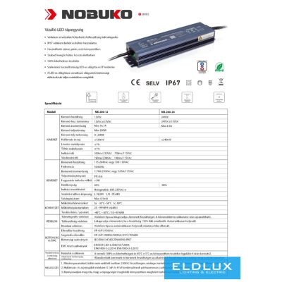 • NOBUKO B Series 12V 200W IP67 Kültéri Led Tápegység