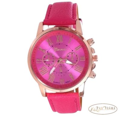 Női karóra, arany színű kerek tok, színes műbőr szíjjal