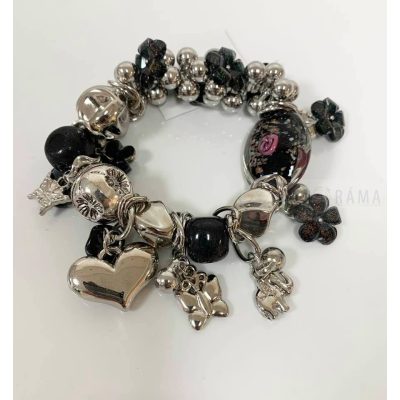 Gumis, női divat karkötő ásvánnyal és fém elemekkel, több színben is kapható.