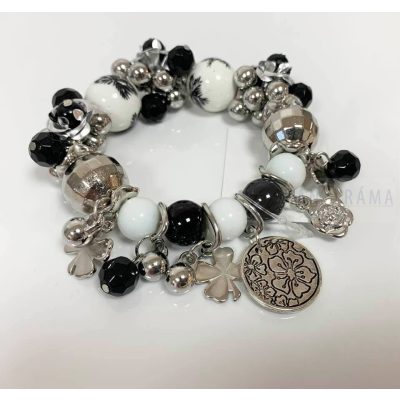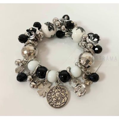Gumis, női divat karkötő ásvánnyal és fém elemekkel, több színben is kapható.