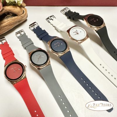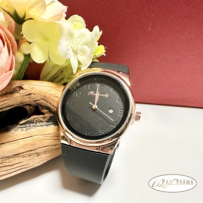 Női karóra kerek arany színű tok, szilikon szíj - Fekete