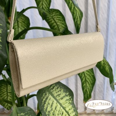 Igényes kidolgozású, női, rostbőr alkalmi táska, világos arany színű