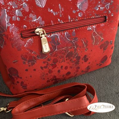Igényes kidolgozású, női rostbőr kézi és váll táska piros színű, ezüstös mintázattal és arany szerelékkel díszítve !