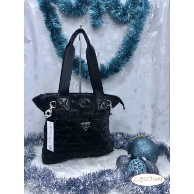 A legújabb modellek közül kínáljuk ezt a gyönyörű, minőségi kézi és váll táskát. A fekete, minőségi feliratos, steppelt vízlepergetős anyagból készült , rostbőrrel kombinált.