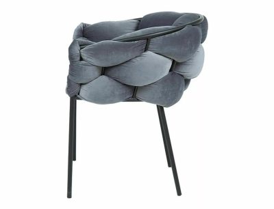 Ez a luxus szék tökéletesen ötvözi a modern dizájnt és a kényelmet. A bársony kárpitozás kellemes tapintású és strapabíró, míg a fonott kialakítás egyedi megjelenést biztosít.