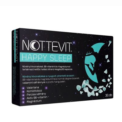 • Az egyik legtöbbet vizsgált (150 tudományos publikáció, 50 klinikai vizsgálat), természetes hangulatjavító és lelki egyensúlyt támogató gyógynövényt, perzsa sáfrányt tartalmaz. A sáfrányt már az ókori perzsa birodalomban is használták teába keverve a lehangolt lelkiállapot, a melankólia kezelésére. Természetes hangulatjavító hatását azóta modern klinikai vizsgálatokkal is igazolták, melyek szerint bizonyítottan fokozza az agyban felszabaduló szerotonin mennyiségét, és ezen keresztül fejti ki pozitív, kedélyjavító hatását. A Nottevit Happy Sleep kapszula garantáltan magas minőségű (1. kategória – Sargol), kézzel szedett Safr’Inside™ perzsa sáfrányt tartalmaz.