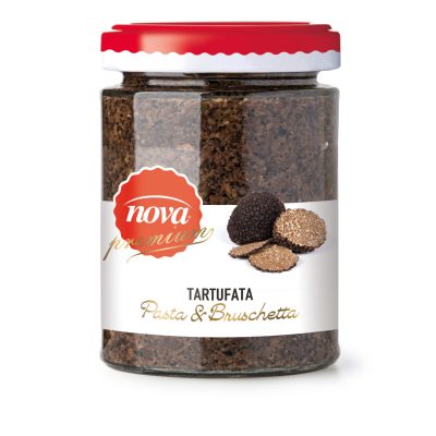 Összetevők: termesztett gomba, 70%, napraforgóolaj, víz, fekete nyári szarvasgomba 1%, petrezselyem, szárított fokhagyma, növényi rost, aromák