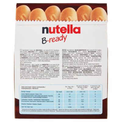 Összetevők: Kakaós mogyorókrém 81,5% (cukor, pálmaolaj, mogyoró (13%**), sovány tejpor (8,7%**), zsírszegény kakaópor (7,4%**), emulgeálószer: lecitinek (szója); aroma (vanillin)), Búzaliszt (16%), Élesztő, Árpamaláta kivonat, Étkezési só, Sovány tejpor, Emulgeálószer: lecitinek (szója), Búzafehérje, Tejfehérje, **A késztermékben 10,6% mogyorónak, 7% sovány tejpornak és 6% zsírszegény kakaópornak felel meg.