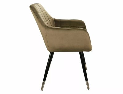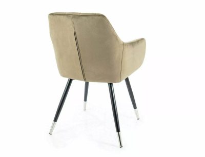 A Nuxe Velvet étkezőszék a modern elegancia megtestesítője. A szék olíva színű bársony kárpitozása puha tapintású és szemet gyönyörködtető. A négyzethálós steppelt kialakítás és a karfa ergonomikus kialakítása tökéletes kényelmet biztosít. A fekete matt és króm kombinációjú fém lábak stabil alapot nyújtanak és kifinomult megjelenést kölcsönöznek a széknek.