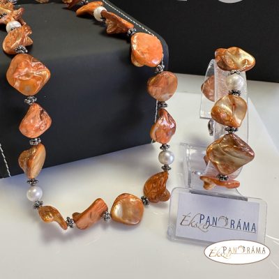 • NYAKLÁNC ÉS KARLÁNC SZETT, KAGYLÓCHIPS, Narancs