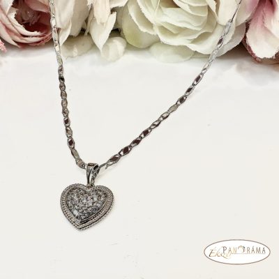 White Gold Filled antiallergén, nikkelmentes nyaklánc, szív alakú kristállyal díszített medállal.