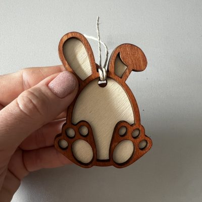Ez a fa nyuszis dísz névre gravírozva készül, így igazán személyes ajándék lehet húsvétra. Felakasztható dekorációnak, ajándék mellé vagy akár a húsvéti csomag részeként is.