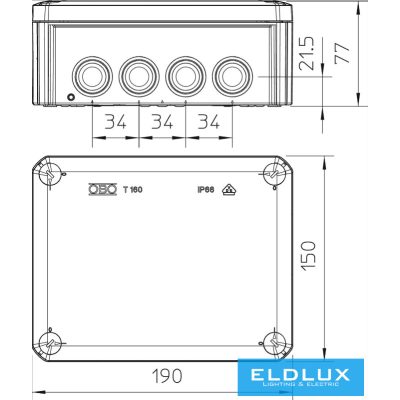 • OBO kötődoboz IP66 190x150x77 világosszürke
