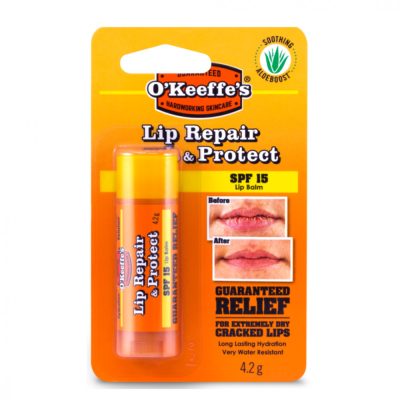 Az O'Keeffe's (OKeeffes) Lip Repair SPF 15 fényvédő ajakbalzsamokat nagyon száraz, repedezett ajkak ápolására fejlesztették ki. Formulájuk mélyen hidratál, helyreállítja az ajkak védőrétegét, és hosszan tartó hatást biztosít – akár 24 órán át.
