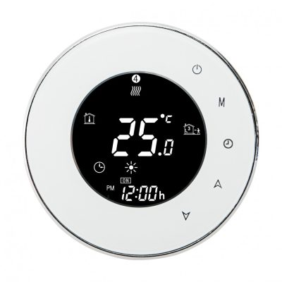 • Okos termosztát gázkazánhoz távolról irányítható, időzíthető kerek fehér okos termosztát