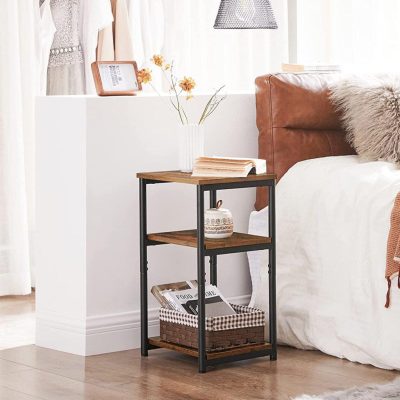 Oldalasztal, Éjjeli szekrény, Telefonasztal 3 szintes, Hálószobába, Acélkeretes, Nappaliba, Hálószoba, Ipari formatervezés, Vintage barna/fekete: