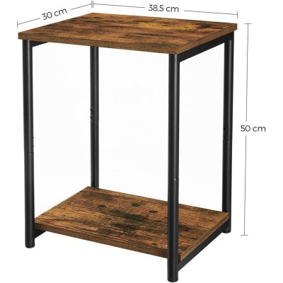 oldalsó asztal éjjeliszekrény 2 szintes hálószoba acélvázas nappali hálószoba ipari stílusú Vintage barna fekete: