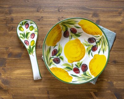 Olivás-citromos mintájú egyedi kerámia mély tál, kerek
