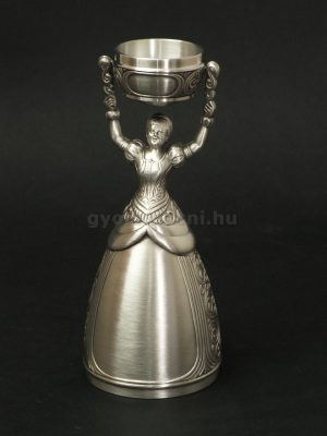 A pohár első részén a menyasszony szoknyája egy viszonylag nagy gravírozható felület, míg a szoknya hátsó része gyönyörű díszes. A két képen a pohár két oldala látható! (eleje és hátulja)
